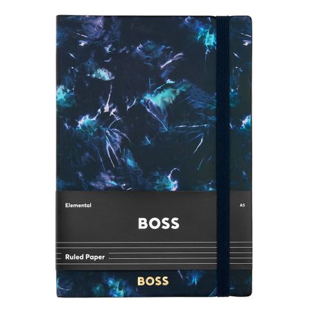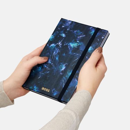 Introducing the Tie-dye Print Series, a new resolutely feminine addition to the BOSS notebook collection. This navy A5 notebook embodies a whimsical and ethereal aesthetic, signed with a luxurious gold foil BOSS logo. Part of the Elemental series, it includes 192 lined pages of 80gsm paper, a vertical elastic closure, and a practical page marker, blending style and functionality effortlessly.