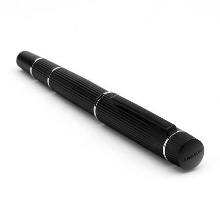 Gathering key elements of our writing instruments' core DNA, such as vertical stripes, luxurious ring details, and innovative textures, our new Core line brings a striking new formation to our writing instrument collection. With its robust frames, tapered silhouettes, one-piece ballpoints, and extended caps, this line represents a sophisticated evolution. This pen is offered in two color versions: Matte Black with small shiny chrome ring details Matte Gun with small shiny black ring details. Each color is available in three writing modes: ballpoint, rollerball, and fountain pen.