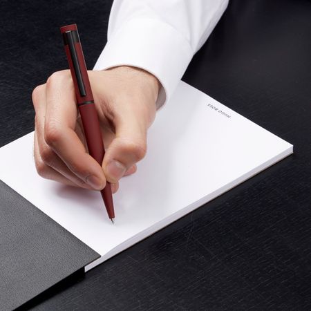 The Loop writing instrument silhouette combines resolutely active and modern design elements, creating an optimal writing experience. These new colorful additions juxtapose a vibrant color palette with matte black trims. The oversized logo is subtly engraved on the lower barrel. It is available in light grey, indigo blue, deep red, or forest green.