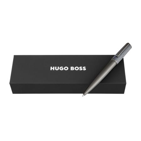 This pen brings a fresh perspective to the signature ?Arche? silhouette, showcasing the BOSS iconic monogram on brushed aluminum. The matte gunmetal finish provides a contemporary and refined look, making it a luxurious and functional accessory for any brand lover.