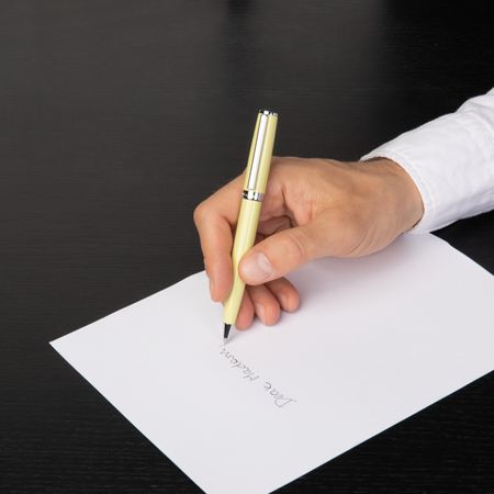 Our iconic Gear silhouette returns with a timeless twist, featuring a simplified logo ring with a glossy lacquer. This new version of gear already feels iconic, and is probably our most commercial item, it features luxurious glossy lacquer on this signature frame. A sophisticated take on a minimalist design, this makes for an instant classic writing instrument, and is available in an array of colors, such as this beautiful pastel yellow shade.