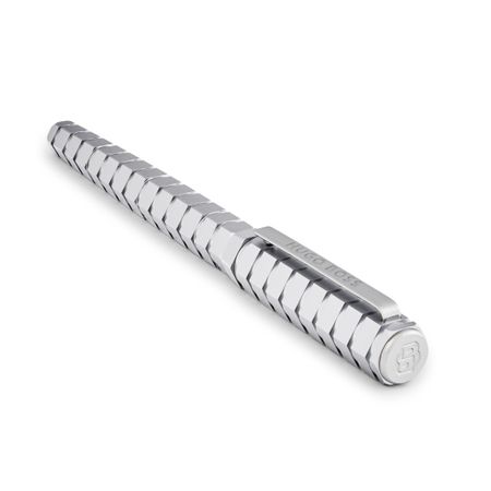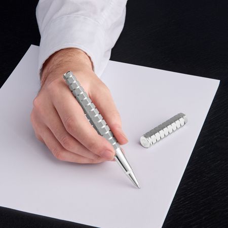 This exclusive writing piece is edited in limited quantity, with each piece numbered. An exceptional item, it is delivered in special, limited-edition packaging, with its guarantee card protected in a luxurious leather card holder. Based on a striking hexagonal form, this pen?s angularity is accentuated by a series of sculptural rectangular streaks. Blurring the line between sculpture and architecture, this exceptional writing instrument is fully plated in minimalist matte chrome, allowing the unique design to take center stage