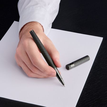 The LOOP writing instrument silhouette combines resolutely active, and modern design elements to create an optimal writing experience. In this new edition, inspired by Bauhaus architecture, a striking geometric grid pattern is applied to a brushed aluminum surface. The combination of the motif and texture introduces a sleek, graphical twist, offering a fresh visual element that enhances the pen?s dynamic form. As a final touch, it is signed with the double B logo at its top.