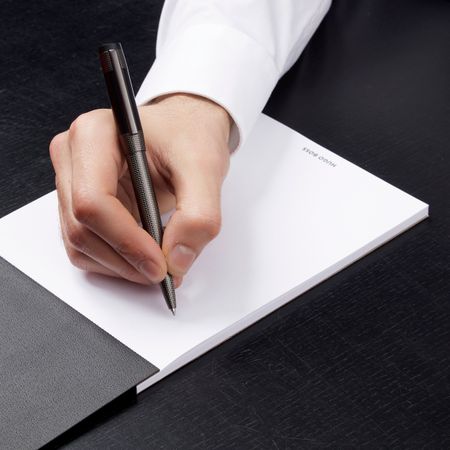 Built on a slim yet strong structure, the Rive pens are defined by symmetrical design elements and contrasting textures. The graphical grid-engraved surface, plated in matte gunmetal, further magnifies the unexpected lines, while a slightly oversized logo is embossed on black matte lacquer.