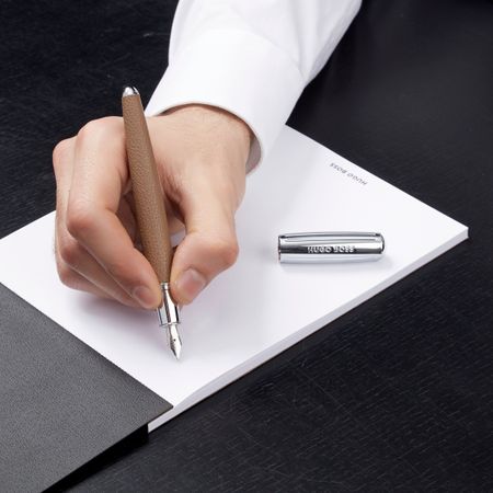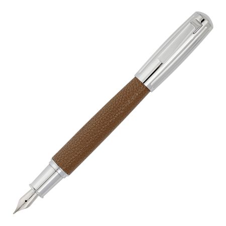 The Pure line, with its tapered yet aerodynamic silhouette, redefines modern aesthetics through structural simplicity. This new Iconic edition imbues timelessness into our long-time best-selling silhouette, featuring crisp and classical chrome accents, and barrels wrapped in luxurious, subtly pebbled textures. The ribbed design and unexpectedly placed logo on the cap add a contemporary touch to this timeless piece. The grained texture is crafted from PU. This line is available in two color versions: camel or black, each adorned with chrome trims and detailing