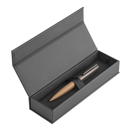 A new minimal take on the Illusion shape, these writing instruments explore the contrast of two matte textures: deep-colored lacquer barrels paired with ribbed metallic caps. Available in refined navy, gray, and camel tones, they embody a sleek and contemporary aesthetic.