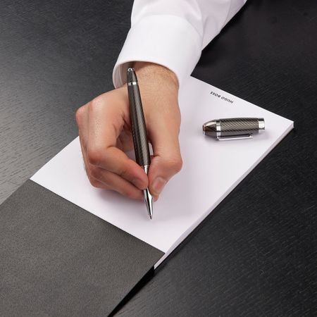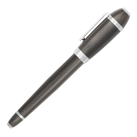 Built on a modernized, slightly oversized edition of a timeless silhouette, this version of the Arc pen will speak to true writing lovers. It mixes an ultra-modern, architecturally inspired engraved pattern, covered in luxurious lacquer for a smooth handfeel, with timeless crisp chrome plating. It is a classic and a statement all at once. This line is available in silver or in gun, both finished with luminous chrome trims.