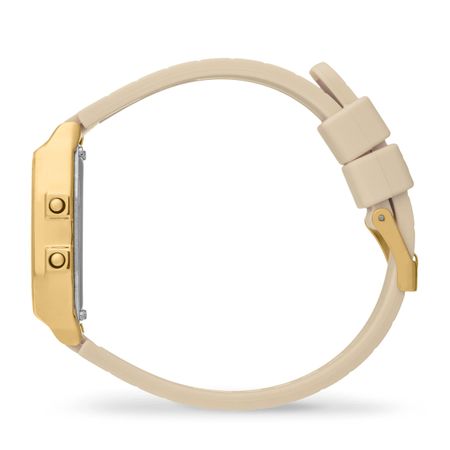 Introducing the ICE Digit Retro Metal Gold Mirror watch from Ice-Watch?a stunning accessory that perfectly blends elegance and modernity. Featuring a sleek beige dial set within a stainless steel case, this chic timepiece is designed for the stylish woman on the go. The unique almond skin color and refined silicone strap add a touch of sophistication, while its water resistance up to 3 ATM ensures durability for your everyday adventures. Weighing only 28g, it?s the perfect blend of comfort and style. Elevate your look with this exquisite watch today!