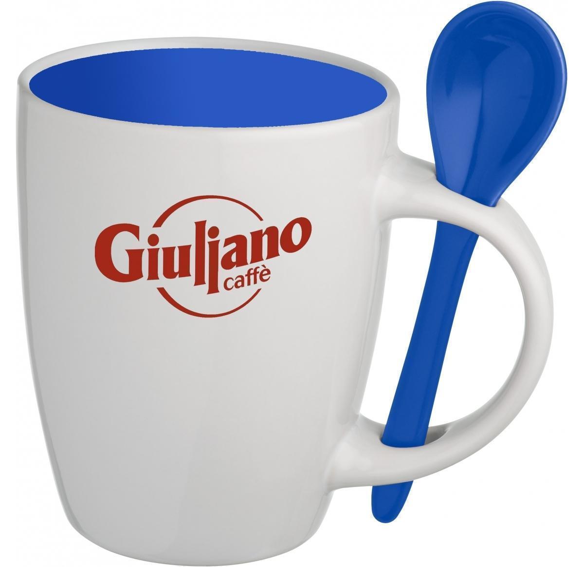 Never be without a spoon again with this novel mug with matching coloured ceramic spoon.