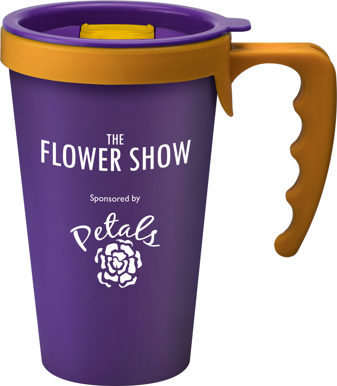 The purple Universal has a large print area and is manufactured and decorated in the UK. There are three different types of lid in a large range of colours.
